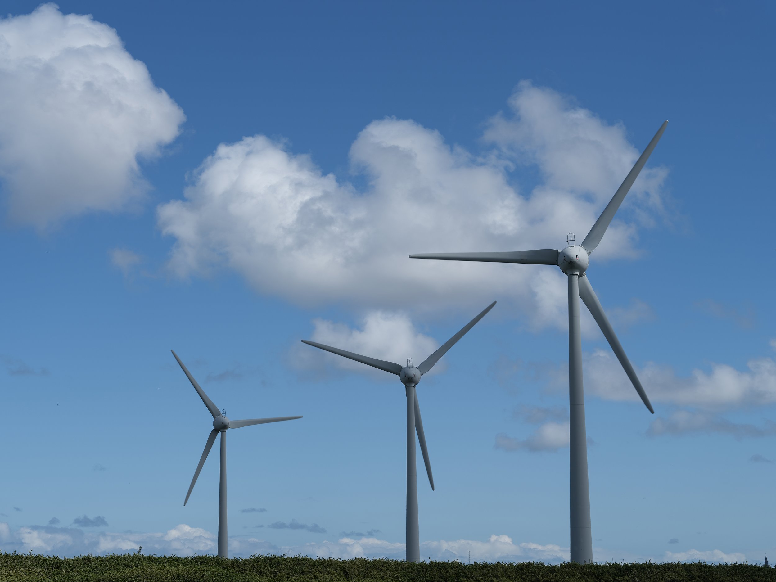Wind turbines.